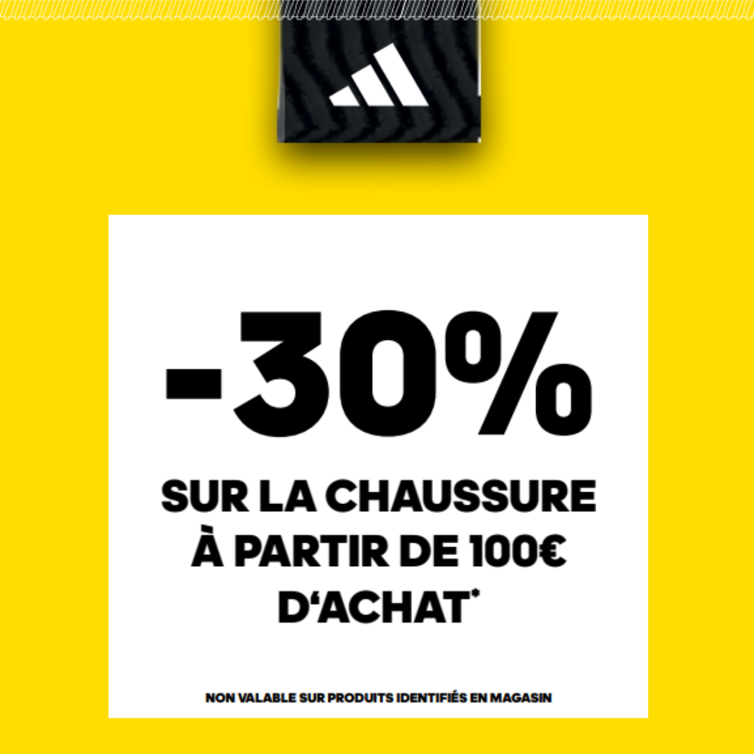 Jusqu’au 2 novembre, bénéficiez de jusqu’à -30% sur les chaussures chez Adidas à partir de 100€ d’achat.